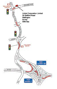 United Corporation UK offices are located in the south east of England and easily accessible by road, rail and air. The office is situated 6 miles from the south section of the M25 motorway, 5 minutes from the nearest railway station and 15 miles by road from London Gatwick airport.